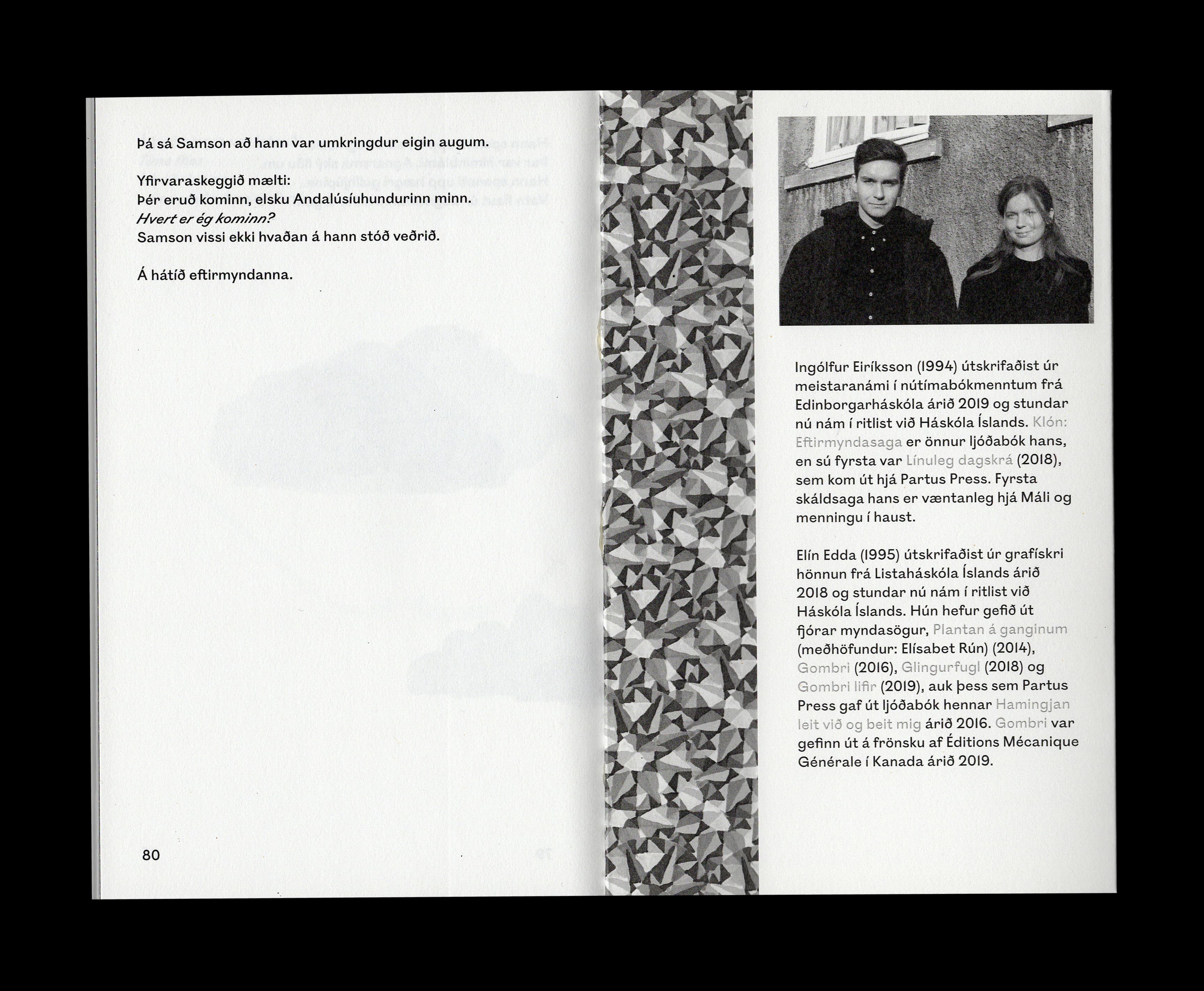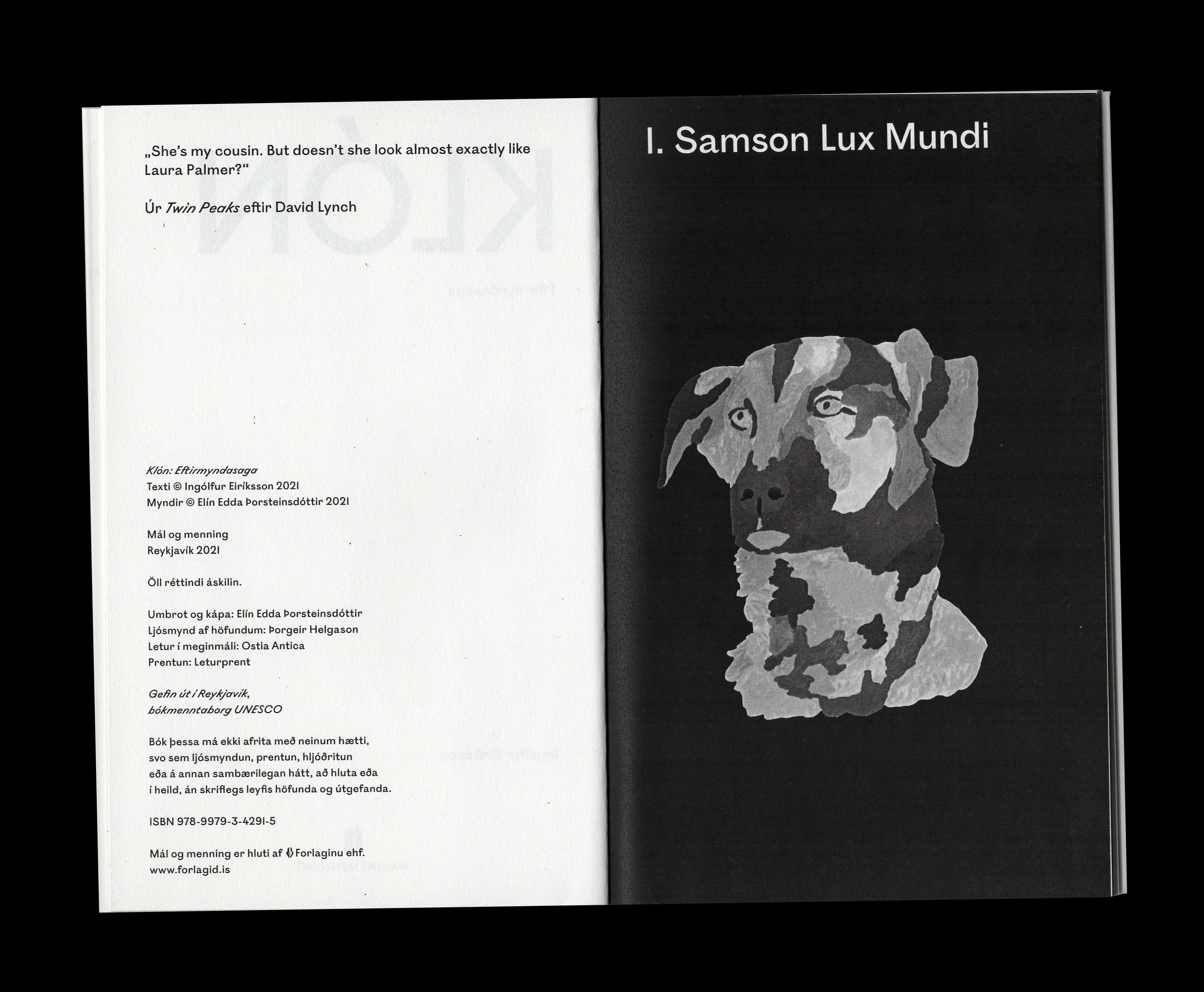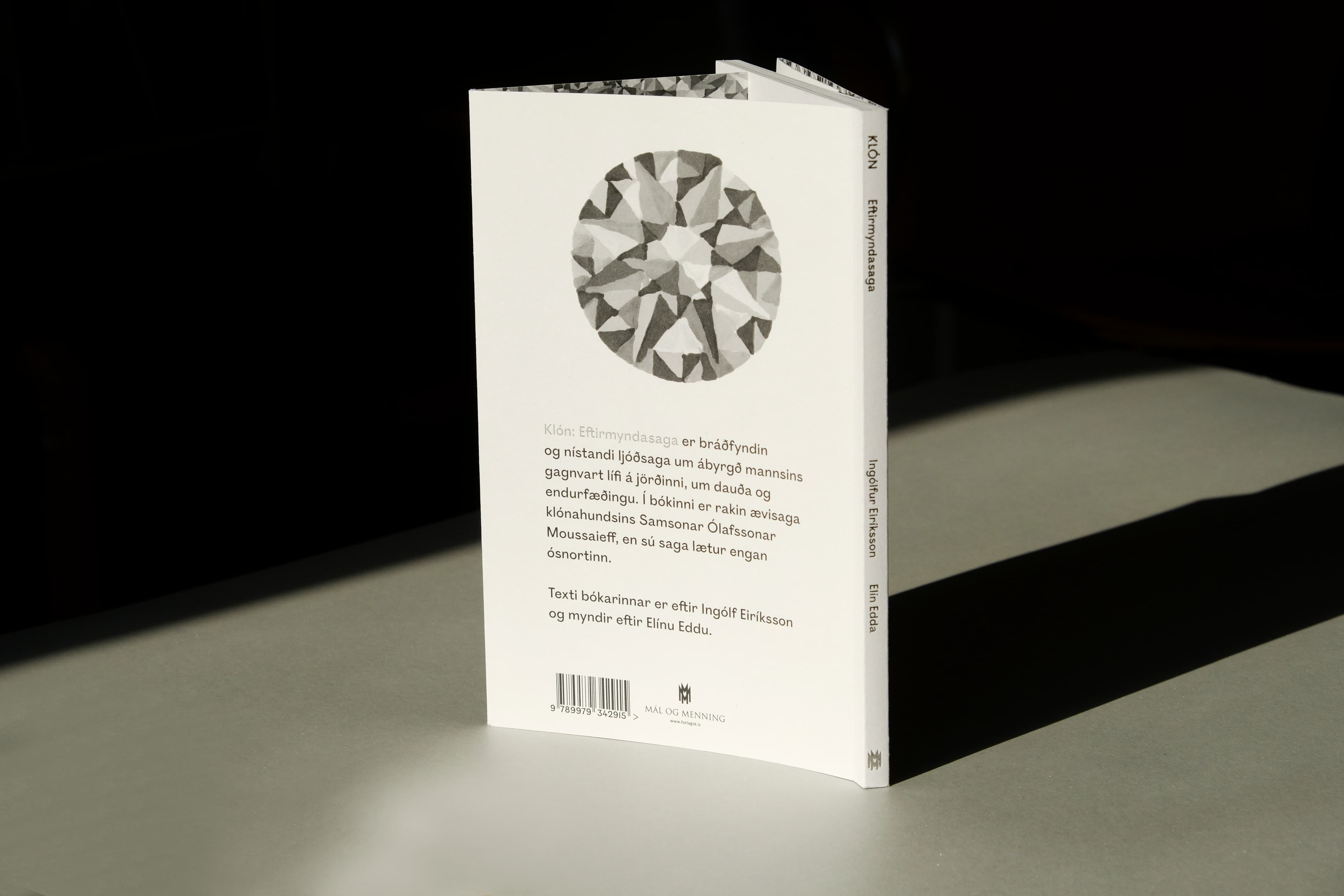 Klón: Eftirmyndasaga er bráðfyndin og nístandi ljóðsaga um ábyrgð mannsins gagnvart lífi á jörðinni, um dauða og endurfæðingu. Í bókinni er rakin ævisaga klónahundsins Samsonar Ólafssonar Moussaieff, en sú saga lætur engan ósnortinn. Texti bókarinnar er eftir Ingólf Eiríksson og myndir eftir Elínu Eddu.